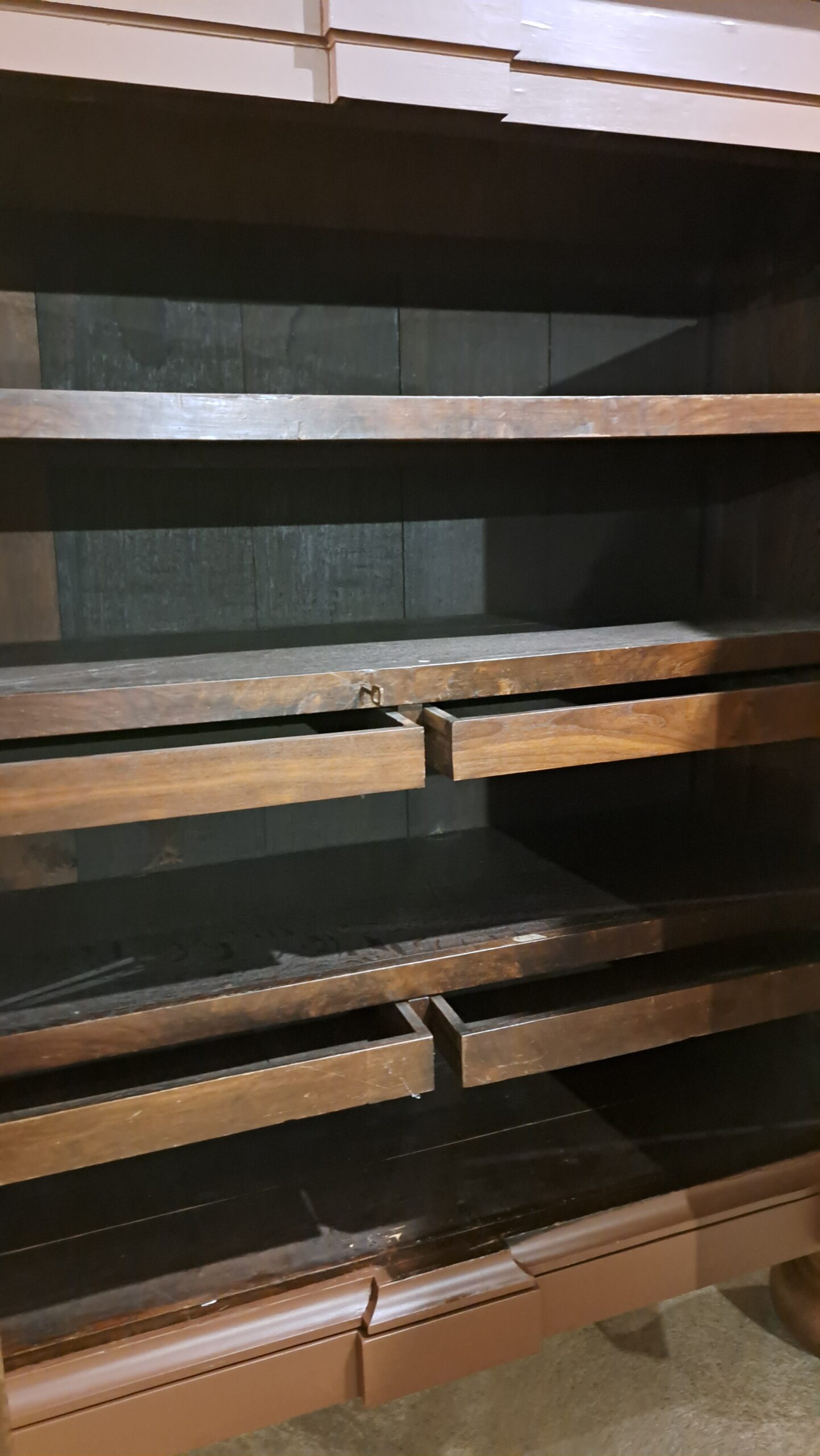 Er zijn in totaal 3 legplanken en 4 lades in de kast.