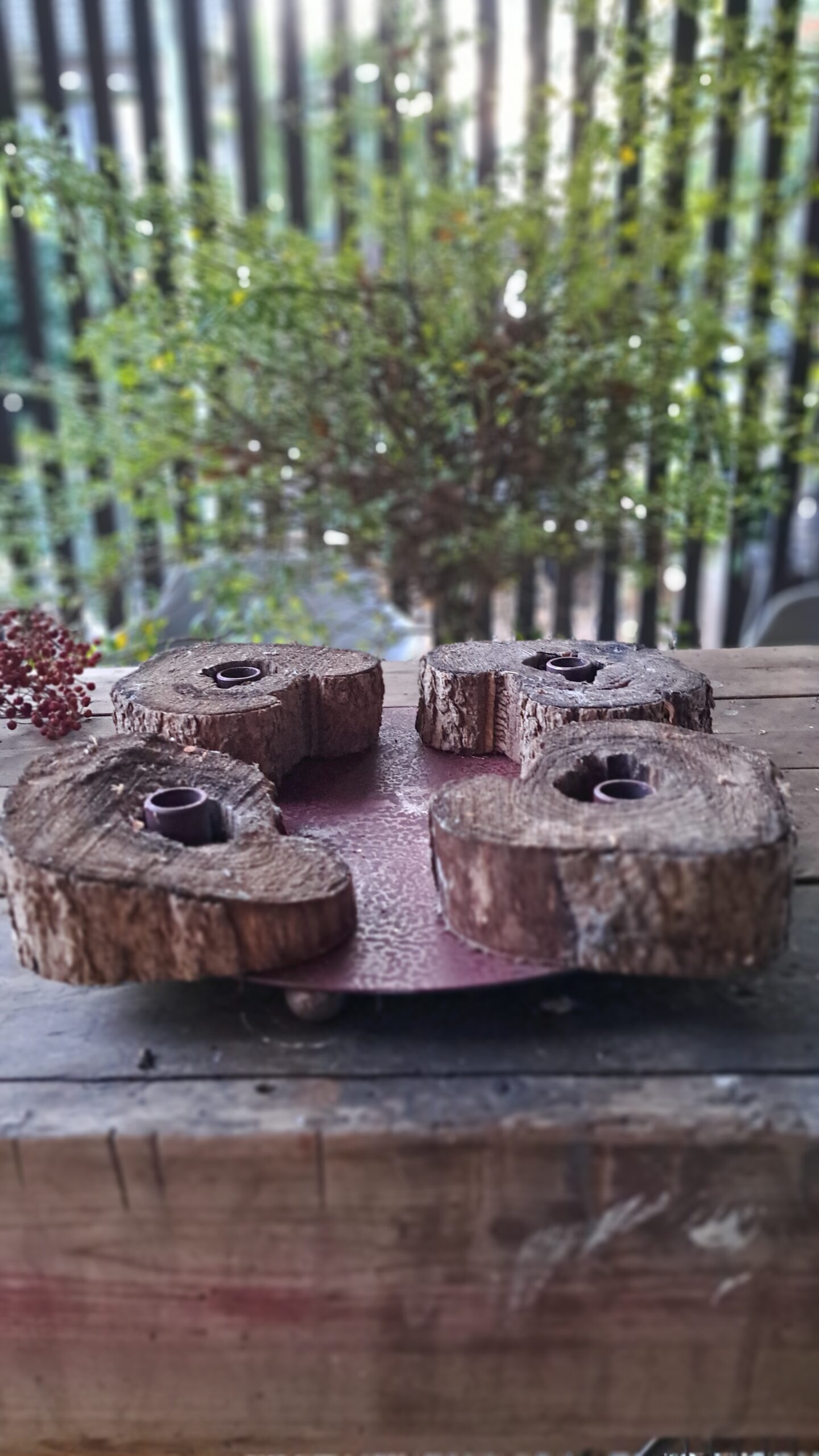 Kandelaar heeft 4 kaarshouders en ronde bol pootjes.