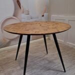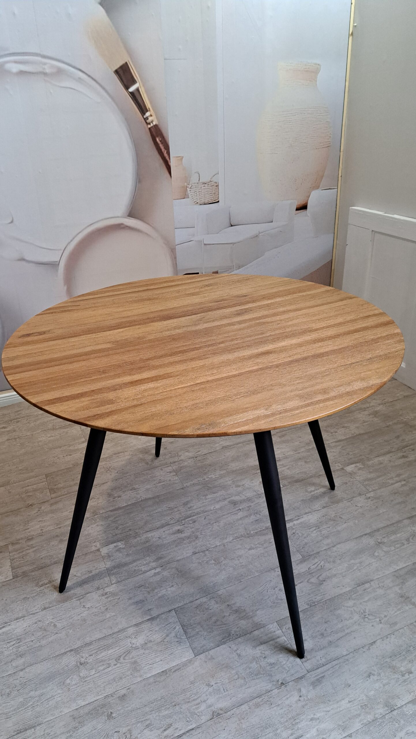Materiaal: teakhouten blad/ijzeren onderstel.